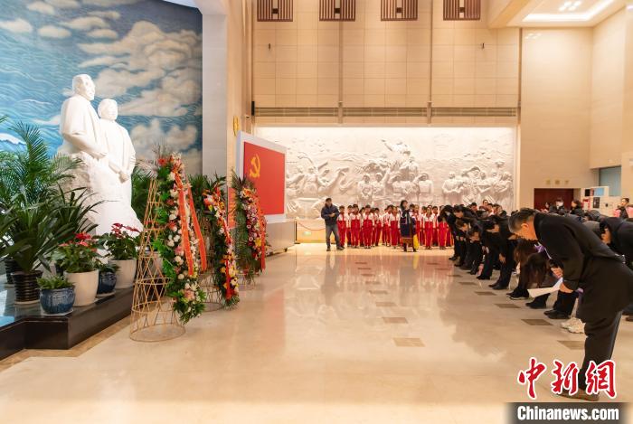據(jù)了解,緬懷活動(dòng)在該紀(jì)念館瞻仰廳舉行,由紀(jì)念館黨總支副書記、副館長(zhǎng)王建平主持。9時(shí)57分,紀(jì)念館黨總支書記、館長(zhǎng)王起寶代表紀(jì)念館全體職工向周恩來(lái)鄧穎超漢白玉雕像敬獻(xiàn)花籃,并帶領(lǐng)全體職工鞠躬致敬,以表達(dá)對(duì)周恩來(lái)同志的深切緬懷。