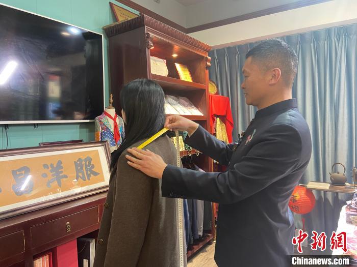 中新網(wǎng)寧波1月11日電(記者 林波)“特意打‘飛的’來浙江寧波找‘紅幫裁縫技藝’傳承人定做‘寶總’同款西裝。”近日,來自山東青島的“西服愛好者”孫倪來到浙江省寧波市奉化區(qū)溪口鎮(zhèn)的王興昌洋服店,向該店“掌門人”王小方定做了一套西服。