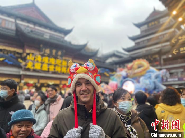 1月21日,2024豫園燈會正式亮燈,一名西班牙小伙兒在現(xiàn)場觀燈。中新網(wǎng)記者 鄭瑩瑩 攝