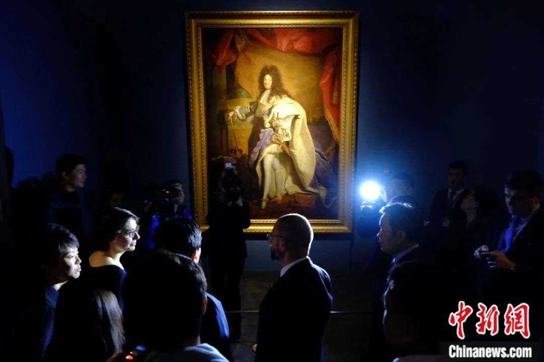 2014年,《名館·名家·名作——紀(jì)念中法建交五十周年特展》在北京的中國(guó)國(guó)家博物館開展,亞森特·里戈于1702年創(chuàng)作的油畫《63歲時(shí)著加冕服的路易十四全身像》與中國(guó)觀眾見面。侯宇 攝