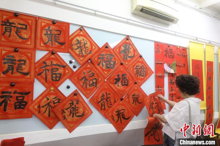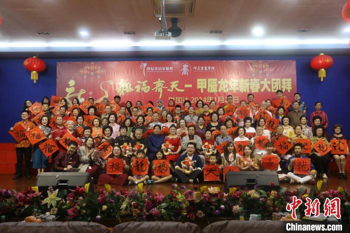 印尼書(shū)法愛(ài)好者揮毫迎甲辰龍年新春