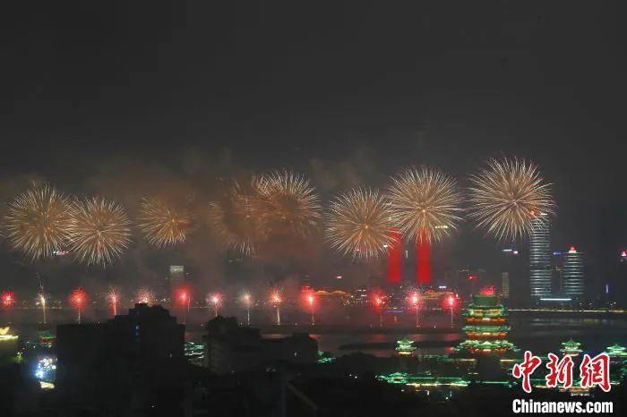 絢麗的煙花與古色古香的江南名樓滕王閣交相輝映;