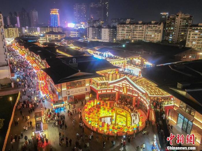 圖為無(wú)人機(jī)航拍古色古香年味十足的繩金塔歷史文化街區(qū),燈火璀璨,人潮涌動(dòng)?!⒘?攝