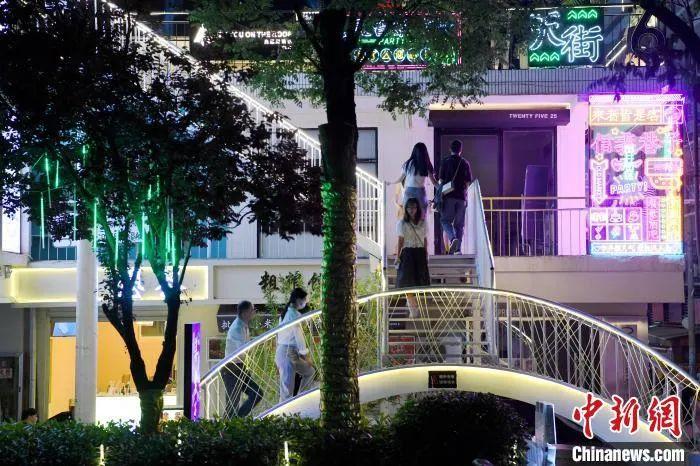 圖為游客在西安大雁塔景區(qū)步行街游覽“詩詞長(zhǎng)街”。 李一璠 攝