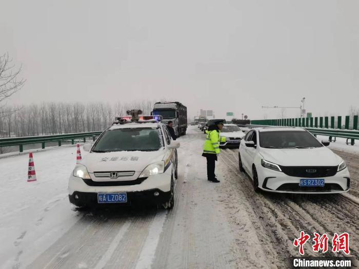 日前,S06泗蚌高速蚌五段,蚌五固大隊為鏟雪車輛護尾。安徽省高速公路路政支隊 供圖