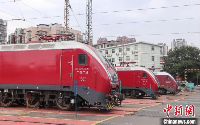 經(jīng)過(guò)整備的和諧型電力機(jī)車(chē)停在庫(kù)內(nèi)蓄勢(shì)待發(fā)。鄧智云 攝