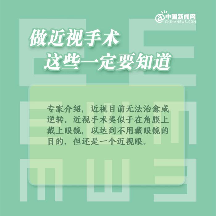 中新網(wǎng)2月4日電 ①近視手術,分為角膜激光手術和眼內鏡植入手術;②一般來說,近視手術的時間建議在18-50歲之間;③術后1個月內,避免異物進入眼睛,不要揉眼和劇烈運動;④術后仍應注意用眼衛(wèi)生、飲食習慣、生活習慣等,要經(jīng)常放眼遠眺。