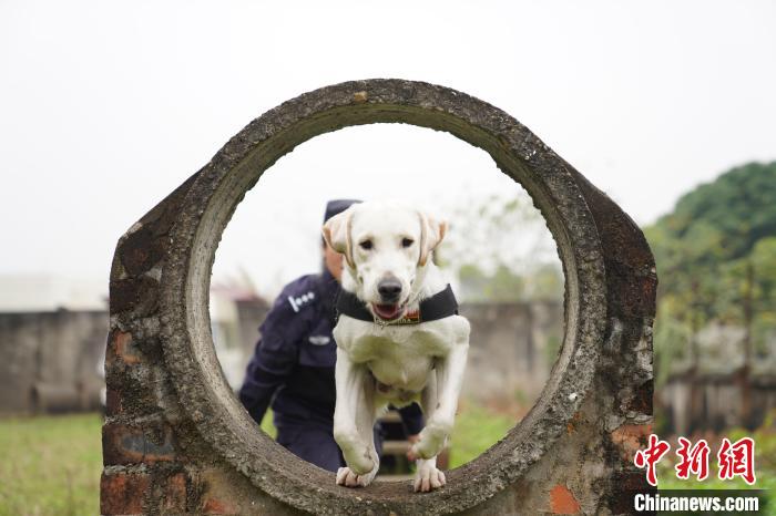 中新網南寧2月5日電 題:“見習”警犬“斯諾”的首個春運:抵御美食誘惑方“過關”