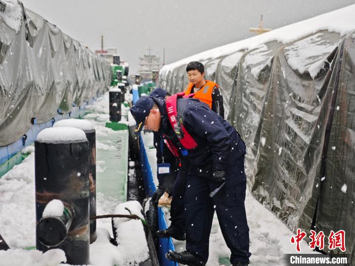 長江航運(yùn)工作人員風(fēng)雪中保障渡運(yùn)安全。交通運(yùn)輸部長江航務(wù)管理局供圖