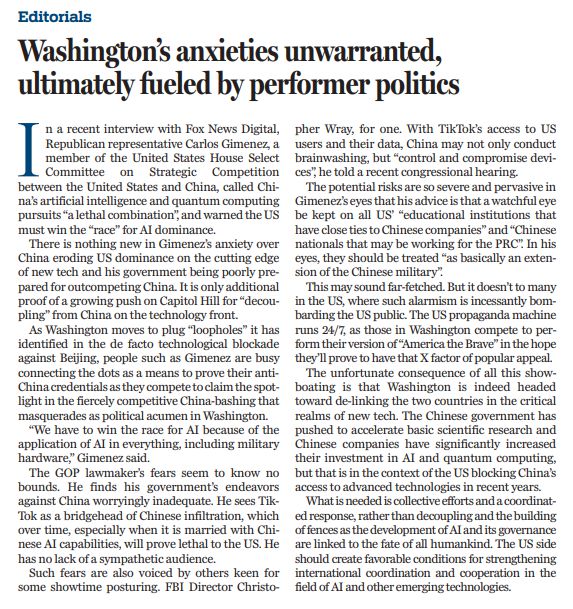 美國眾議院“美中戰(zhàn)略競爭特別委員會”成員卡洛斯 吉門尼斯近日渲染稱,中國正同時追求在人工智能和量子計算領(lǐng)域取得進步,這是一種“致命的組合”。