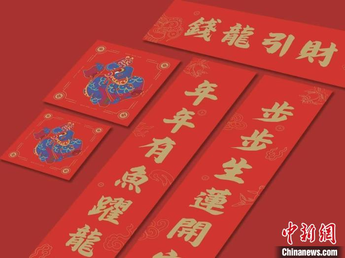 為迎接甲辰龍年,以傳統(tǒng)年畫(huà)“錢龍引進(jìn)”主體圖案為變體應(yīng)運(yùn)而生的不僅有春聯(lián)、福字、紅包等,還有日歷、桌布、夜燈等生活用品,蘊(yùn)含著年畫(huà)元素的文創(chuàng)產(chǎn)品近期銷售火爆,頗受年輕人喜愛(ài)。