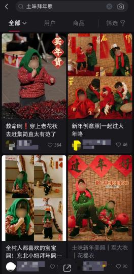在某社交平臺(tái)搜索可以發(fā)現(xiàn)很多“土味”拜年照。