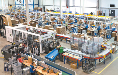 在小城東郊的工業(yè)開(kāi)發(fā)區(qū),MBB物流公司的智能倉(cāng)庫(kù)里一片忙碌景象:十幾名工人在智能機(jī)器人的協(xié)助下,將一件件快遞包裹進(jìn)行快速貼碼分裝,并通過(guò)傳送帶直接送至物流貨車(chē)車(chē)廂內(nèi)。24小時(shí)內(nèi),這些快遞就會(huì)被送到波蘭、德國(guó)的消費(fèi)者手中;48小時(shí)內(nèi),其他歐盟國(guó)家的消費(fèi)者也能收到各自的商品。因商家需在農(nóng)歷新年假期到來(lái)之前集中補(bǔ)貨,MBB物流公司業(yè)務(wù)量猛增,但各處運(yùn)轉(zhuǎn)都井然有序。