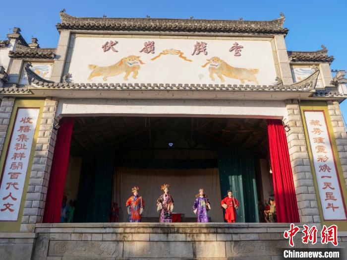 資料圖:安徽省宣城市績溪縣伏嶺鎮(zhèn),徽戲童子班的演員們在戲臺上表演。 張雨生 攝