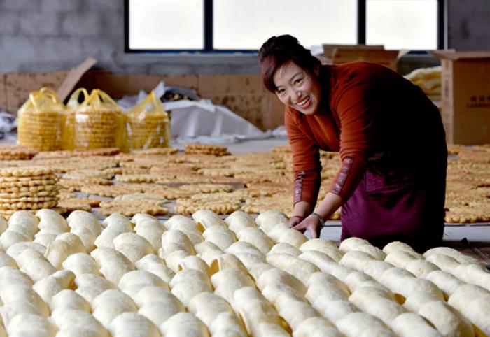 圖為藏族阿佳在打包“卡塞” 中新社記者 貢嘎來松攝
