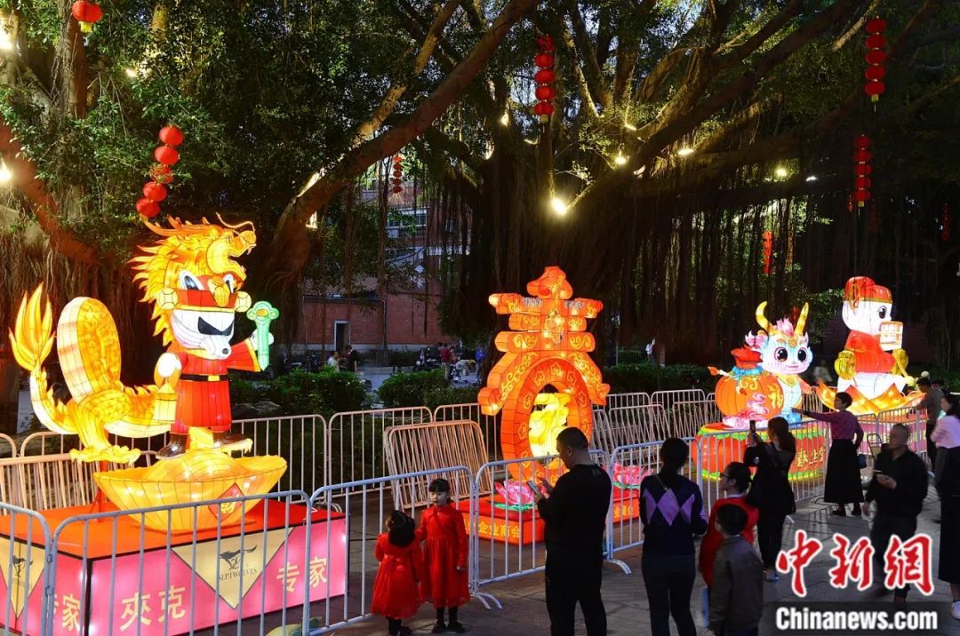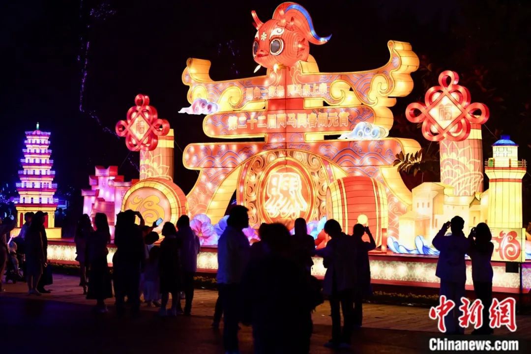 第二十二屆“兩馬同春鬧元宵”燈會在福建省福州市馬尾區(qū)瑯岐紅光湖公園亮燈,吸引許多市民前來參觀。中新社記者 王東明 攝