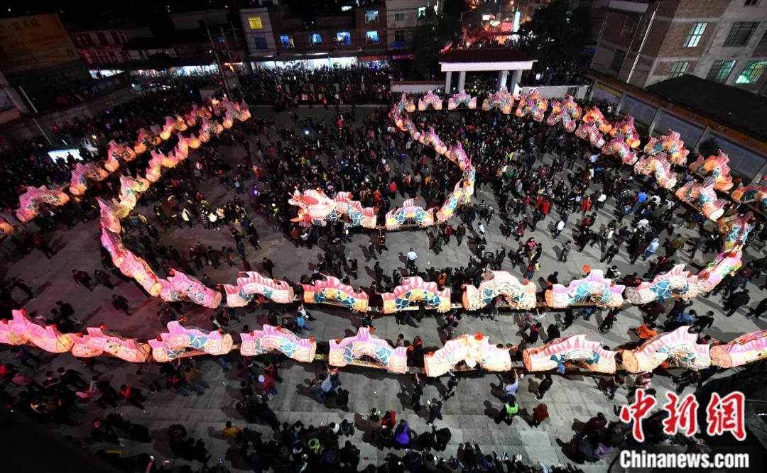 連城林坊游龍,村民們抬著色彩繽紛的大龍環(huán)著村道游走鬧新春。游大龍活動是林坊林氏家族傳統(tǒng)文化藝術(shù)活動的遺產(chǎn),有500多年歷史,意在祈求風(fēng)調(diào)雨順、國泰民安。中新社記者 王東明 攝