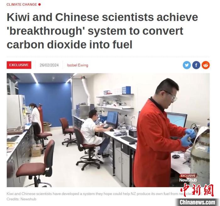 新西蘭和中國(guó)科學(xué)家正合作開發(fā)一種將二氧化碳轉(zhuǎn)化為有用物質(zhì)的系統(tǒng)。圖片來源于新西蘭Newshub網(wǎng)站截圖。