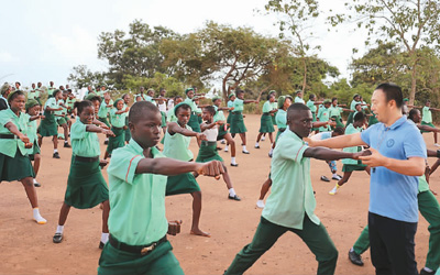 2月的塞拉利昂,驕陽似火。在首都弗里敦一所中學(xué)里,“中國師父”劉偉正為近百名學(xué)生表演五步拳。他眼神堅(jiān)毅,動(dòng)作行云流水,揮汗如雨卻酣暢淋漓,贏得陣陣掌聲。
