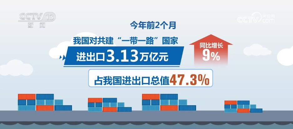海關(guān)統(tǒng)計(jì)數(shù)據(jù)顯示,今年前2個(gè)月,我國對(duì)共建“一帶一路”國家進(jìn)出口3.13萬億元,同比增長9%,占我國進(jìn)出口總值的47.3%。其中,對(duì)東盟進(jìn)出口9932.4億元,增長8.1%;對(duì)中亞五國進(jìn)出口950.9億元,增長26%。同期,對(duì)RCEP其他成員國進(jìn)出口1.94萬億元,增長3.5%;對(duì)拉美進(jìn)出口5874.8億元,增長17.3%;對(duì)非洲進(jìn)出口3389.4億元,增長17.3%。
