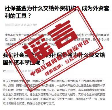 中新網(wǎng)3月18日電 據(jù)“互聯(lián)網(wǎng)聯(lián)合辟謠平臺”微信公眾號消息,近段時間以來,有少數(shù)網(wǎng)絡(luò)自媒體發(fā)布視頻稱,我國社會保險基金“幾乎全部交給外資機(jī)構(gòu)管理”,且被用于“買賣A股”,質(zhì)疑社?;鸪蔀椤巴赓Y套利的工具”。經(jīng)中國互聯(lián)網(wǎng)聯(lián)合辟謠平臺向有關(guān)主管部門核實(shí)查證,前述言論均為不實(shí)信息。
