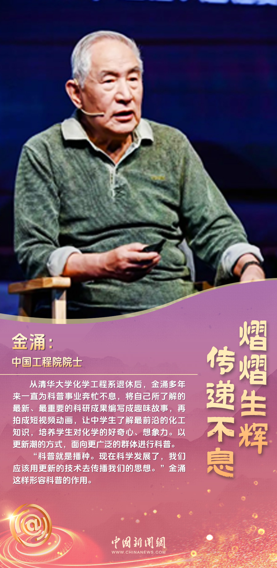 他,用一年時(shí)間,冒著嚴(yán)寒、頂著酷暑,與居民們深入溝通,解決好社區(qū)的“充電難”問題;她 ,2019年在大學(xué)校園中挺身而出,保護(hù)同學(xué),2023年成為了一名人民警察;他,從清華大學(xué)化學(xué)工程系退休后,多年來一直為科普事業(yè)奔忙不息……