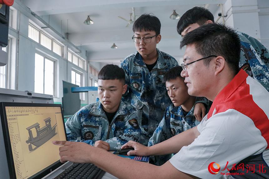 教師在對學(xué)生設(shè)計的“紅船”模型數(shù)據(jù)進(jìn)行校正。 李潔亭攝
