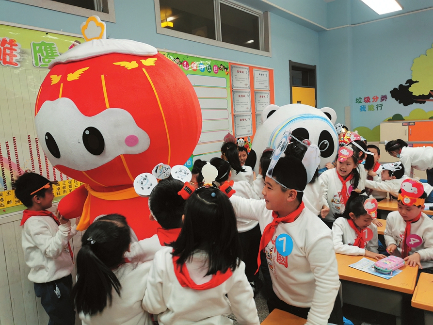 1月4日,太原市新建路小學內,冬奧會吉祥物“冰墩墩”“雪容融”正在與孩子們互動。據(jù)了解,當日該校開啟“樂考迎冬奧 一起向未來”一二年級樂考活動。通過“冬奧”禮儀、“冬奧”吉祥物我來做等項目測評內容,采用游園走班式樂考,讓孩子們在樂考中走近“冬奧會”、了解“冬奧會”。(記者阮洋攝)