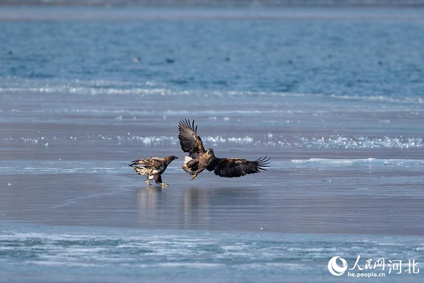 白尾海雕現(xiàn)身石家莊崗南水庫(kù)。 劉洵攝