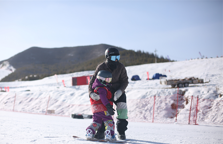 金彬彬和女兒一起練習滑雪。受訪者供圖