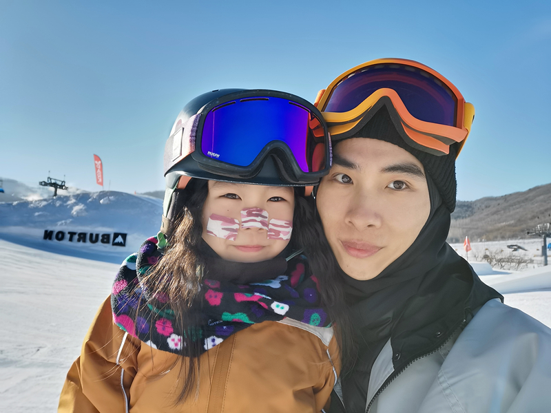 萱萱還是個社交小達人,每次練習滑雪的時候,還會主動和其他成年滑雪愛好者一起攀談,討論滑雪的技巧和經(jīng)驗。時間一長,萱萱已經(jīng)成了整個滑雪場的“團寵”,大家都喜歡看著這個“小蘿莉”在雪道上飛馳。