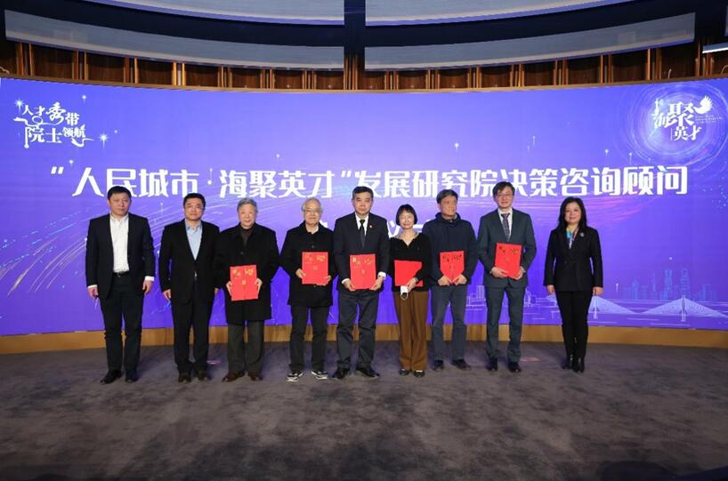 會(huì)上,人民城市海聚英才發(fā)展研究院舉行了決策咨詢顧問聘任儀式。市委組織部人才處處長(zhǎng)譚樸珍、楊浦區(qū)委書記謝堅(jiān)鋼為金力、陳杰、汪品先、莊松林、黃崇祺、褚君浩院士頒發(fā)聘書;楊浦區(qū)人大常委會(huì)主任程繡明、區(qū)委副書記周海鷹為林元培、穆穆、常青、李兆申、徐祖信、李俊院士頒發(fā)聘書。