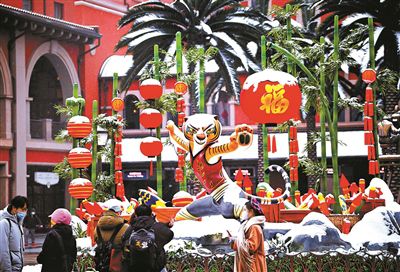 遍布園區(qū)的新春主題裝飾、全新推出的新春主題娛樂演出、充滿“年味”的限定美食……昨日,在紛紛揚揚的雪花中,北京環(huán)球度假區(qū)開啟了首個“環(huán)球中國年”季節(jié)性主題活動。即日起至2月20日,帶有春節(jié)特色的全新娛樂體驗將伴隨游客一起辭舊迎新,共同迎接虎年春節(jié)的到來。