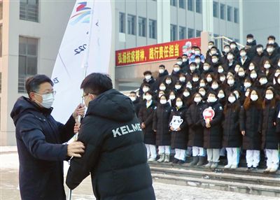 1月23日早7時許,河北工業(yè)大學(xué)舉行冬奧志愿者出征儀式,227名師生志愿者在國旗下莊嚴(yán)宣誓:“志愿青春,冬奧有我!”