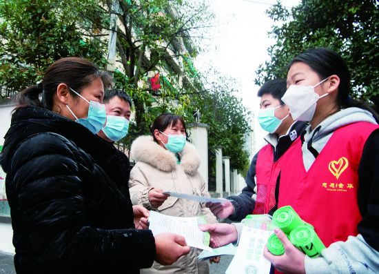 1月23日,在金華婺城區(qū)城西街道河盤橋社區(qū),租住在老肉聯(lián)宿舍等地的外來務(wù)工人員子女,趁著放寒假當(dāng)起垃圾分類宣傳員,給河盤橋社區(qū)居民分發(fā)宣傳冊,講解《金華市生活垃圾分類管理?xiàng)l例》和“兩定四分”投放規(guī)定,協(xié)助社區(qū)向居民贈送垃圾袋。(時(shí)寬兵)