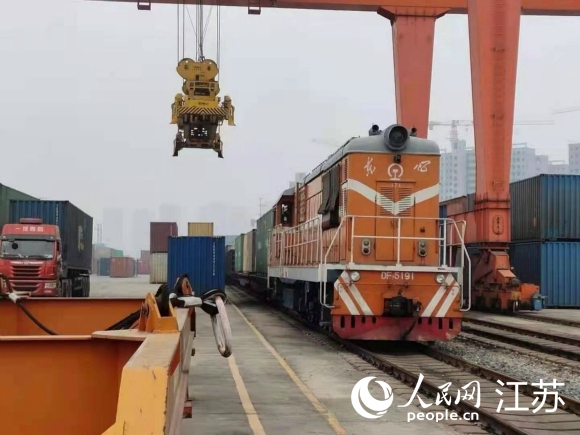人民網(wǎng)徐州1月25日電 25日凌晨,伴隨著火車鳴笛聲,搭載100標箱1236余噸貨物的中歐(亞)班列從徐州銅山站緩緩駛出,標志徐州銅山中歐(亞)班列正式首航。