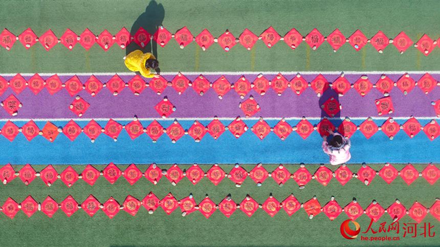 人民網(wǎng)石家莊1月22日電 近日,河北省唐山市豐潤區(qū)泉河頭鎮(zhèn)羅文口小學(xué)書法小組的學(xué)生們,來到羅文口村書寫春聯(lián)和“福”字,把新春祝福送給村民。(朱大勇)