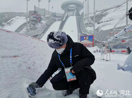 國家跳臺滑雪中心電力保障團隊在賽事后檢查用電設備。 韓寶喜攝