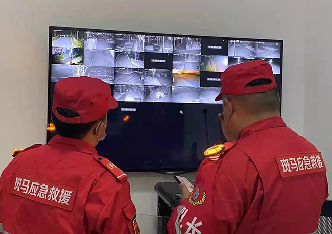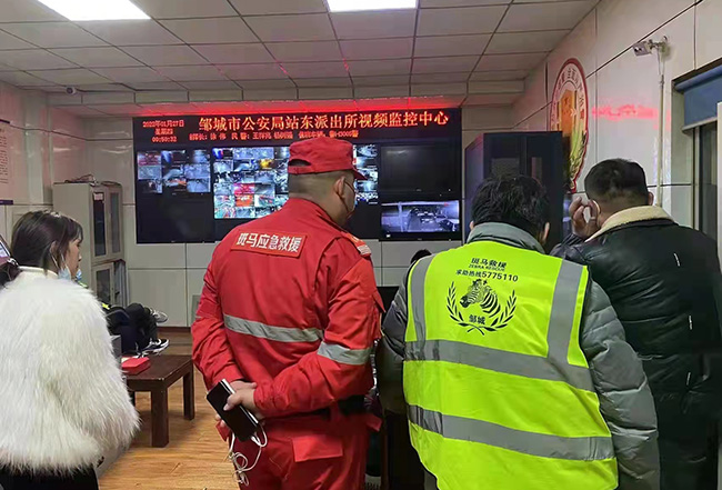 斑馬救援隊員在派出所查看監(jiān)控??酌鲾z