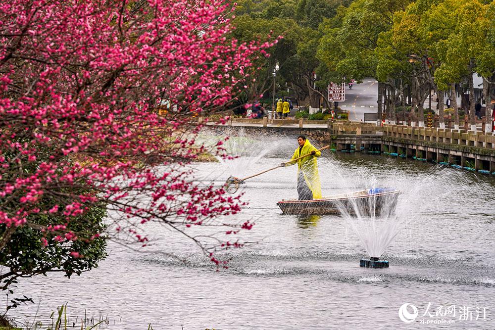 盡管天空飄著細雨,舟山普陀山司基畈河上,河道保潔員仍在辛勤工作著,打撈水面漂浮物,保護水生態(tài)環(huán)境……守護一汪碧綠的清水,已成為普陀山人的習慣。