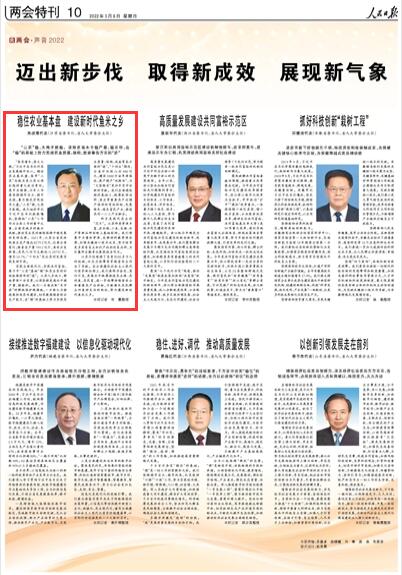 人民日報丨吳政隆代表:穩(wěn)住農(nóng)業(yè)基本盤 建設(shè)新時代魚米之鄉(xiāng)