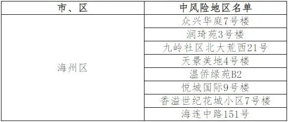 連云港市中風(fēng)險地區(qū)(8個)
