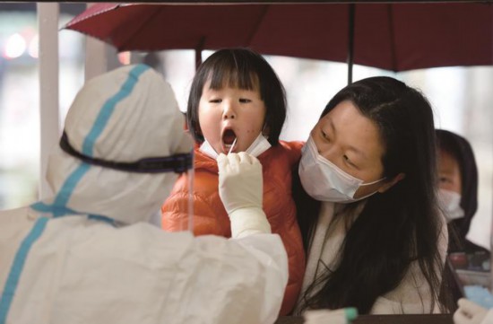 3月20日,在嘉興秀洲區(qū)新城街道核酸采樣點(diǎn),市民們冒雨前來參加核酸檢測?,F(xiàn)場,有不少小朋友跟著家長參加檢測,面對(duì)和藹可親的醫(yī)護(hù)人員,小朋友們積極配合,一個(gè)個(gè)表現(xiàn)得特別勇敢。(馮玉坤)