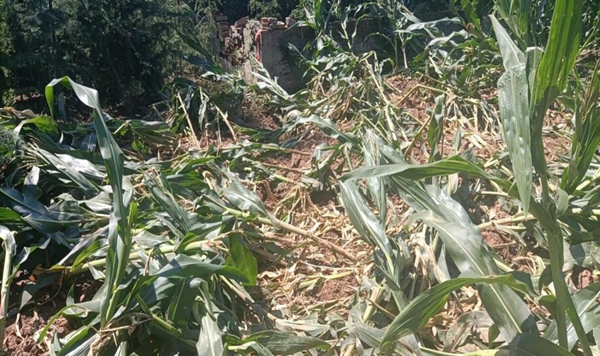 南京老山地區(qū)農民的玉米地被野豬破壞的場景。浦口區(qū)湯泉街道農業(yè)辦供圖