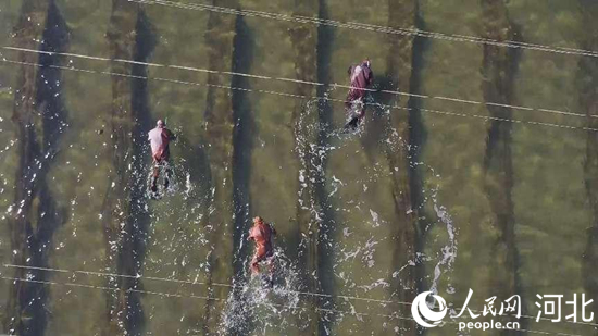 樂(lè)亭縣養(yǎng)殖戶正在打撈海參。 張偉攝
