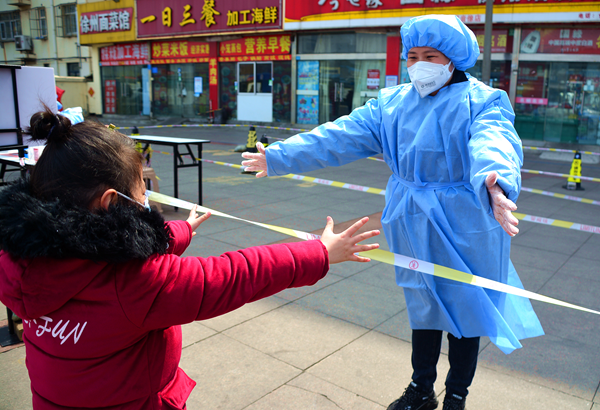 3月4日晚,連云港市海州區(qū)發(fā)現(xiàn)1例陽(yáng)性人員,港城疫情防控阻擊戰(zhàn)就此打響。5日早上6點(diǎn)半,孫麗群接到參與核酸檢測(cè)服務(wù)工作的通知,第一時(shí)間將讀小學(xué)的女兒送到姐姐家照顧,轉(zhuǎn)頭便投入到疫情防控工作中去。相隔十幾天不見(jiàn),女兒在做核酸檢測(cè)時(shí)見(jiàn)到了媽媽,思念的淚水瞬間“決堤”。