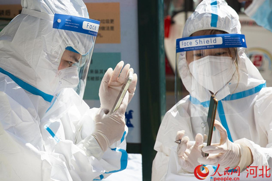 張振是滄州市人民醫(yī)院胃腸外科的護(hù)士。去年,他曾到藁城支援核酸采集工作。這一次,接到緊急任務(wù)通知后,有核酸采集經(jīng)驗(yàn)的他再次與同事奔赴核酸采集點(diǎn)?!扒皫滋煳覀?cè)诤游鞅苯稚鐓^(qū)采集核酸,每人每天大概要采600余人的樣本?!彪娫捓?,張振的聲音略微沙啞。