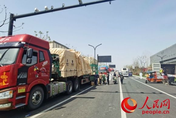 通農(nóng)物流臨時交易區(qū)內(nèi),一輛輛卡車運(yùn)來各類新鮮的蔬菜。人民網(wǎng)記者 王繼亮攝