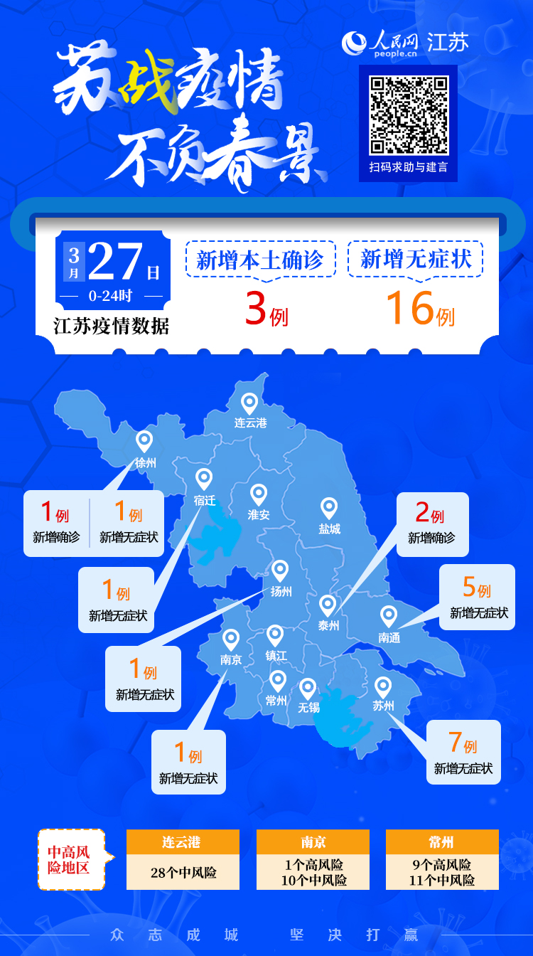 3月27日江蘇新增本土確診病例3例 本土無癥狀感染者16例
