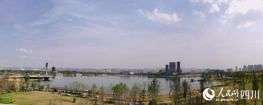 龍泉山脈綿亙遠(yuǎn)方,東安湖水蕩漾眼底,體育場(chǎng)館巍峨半空,花草樹木各展春姿。在湖光山色之間,有大量市民前來踏青賞春,順便欣賞著大運(yùn)會(huì)場(chǎng)館和火炬塔的風(fēng)采。